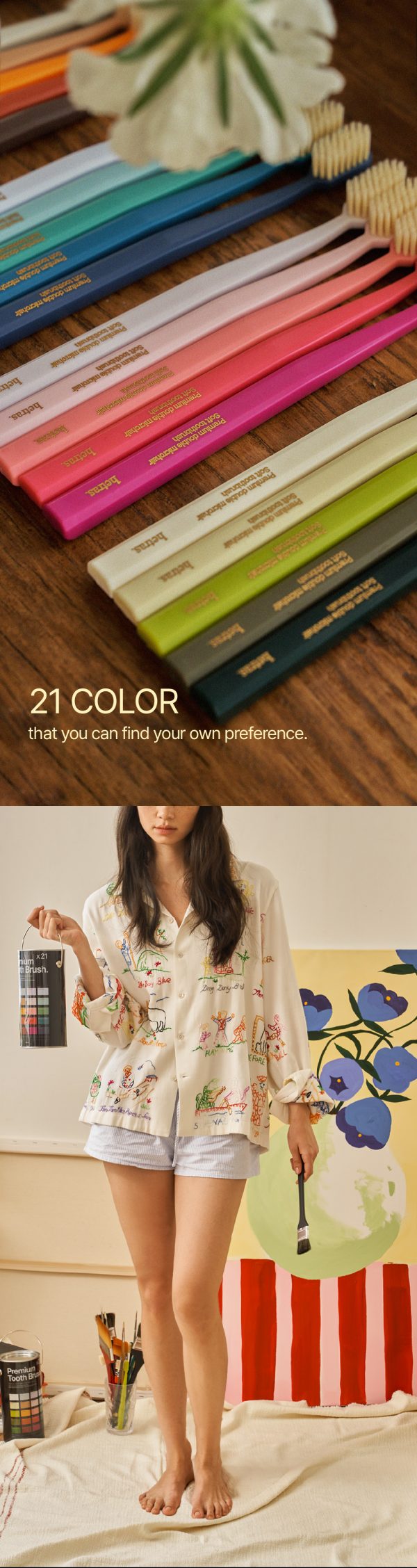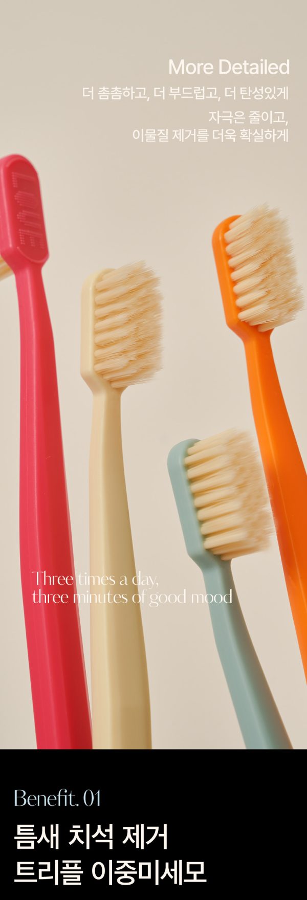 This double-layered ultra-fine toothbrush cleans every nook and cranny, even the blind spots of molars.